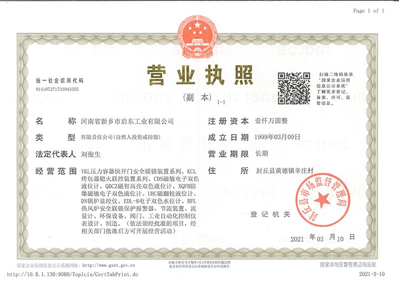 河南省新鄉(xiāng)市啟東工業(yè)有限公司始建于1987年,是專注研發(fā)、生產(chǎn)自動化儀器儀表(主要與壓力容器、鍋爐等容器配套使用)的廠家。主要產(chǎn)品有液位計(jì)(磁敏雙色型、磁翻柱型等)系列、烤包器熄火聯(lián)控裝置系列、壓力容器快開門安全聯(lián)鎖保護(hù)裝置系列、鍋爐報(bào)警器系列。二十多年來,公司產(chǎn)品暢銷國內(nèi)并遠(yuǎn)銷俄羅斯、蒙古與東南亞,深得廣大用戶的信賴和好評。我們多年來致力于自動化儀器儀表的研制生產(chǎn),公司現(xiàn)具有完善的生產(chǎn)、試驗(yàn)、檢測手段和設(shè)備??萍紕?chuàng)新、誠信服務(wù),是我們不變的經(jīng)營理念,我們將以強(qiáng)有力的技術(shù)支持及售后竭誠為客戶提供良好的服務(wù)。  2012年我公司成功研發(fā)了KCL系列烤包器熄火聯(lián)控裝置,并于2013年2月2日榮獲中華人民共和國國家知識產(chǎn)權(quán)局辦法的《實(shí)用新型**證書》<**號:2021202257735>該產(chǎn)品廣泛應(yīng)用于唐鋼等大型鋼鐵企業(yè),為烤包器安全作業(yè)提供了有力的保障?! ?002年我公司成功研發(fā)磁敏電子雙色液位計(jì)獨(dú)特的高亮度LED紅綠雙色顯示,獲得了專家的首肯和用戶的一致好評。在此基礎(chǔ)上我公司研發(fā)人員十年磨一劍,致力于XQFB-1防爆型磁敏雙色液位計(jì)的研發(fā),于2013年12月27日由國家防爆電器產(chǎn)品質(zhì)量監(jiān)督檢驗(yàn)中心檢驗(yàn)合格并頒發(fā)防爆合格證書<編號:cnex19.0883>。該產(chǎn)品性能得到了充分的發(fā)揮,廣泛應(yīng)用于含有Ⅱ類A·B級T1-T4組可燃?xì)怏w或蒸汽與空氣混合形成的爆炸性混合物的0區(qū)、1區(qū)危險(xiǎn)場所。連接用戶DCS或PLC系統(tǒng)實(shí)現(xiàn)遠(yuǎn)距離集中顯示和控制,從而實(shí)現(xiàn)節(jié)能、數(shù)字化管理。為用戶增加了一定的經(jīng)濟(jì)效益和社會效益,。2014年公司成功申請了夢潤儀表的logo,新的品牌新的形象,夢潤儀表是啟東的LOGO, 歡迎新老用戶前來洽談合作?! ∥覀円蝗缂韧刈⒅乜蒲械耐度?,憑借產(chǎn)品的不斷更新、加大科技含量,進(jìn)一步拓展市場。我們相信品質(zhì)成就未來,以過硬質(zhì)量、優(yōu)惠價(jià)格、完善的售后服務(wù)熱忱歡迎廣大客戶來我司視察指導(dǎo)、洽談業(yè)務(wù);精誠合作,共創(chuàng)輝煌!